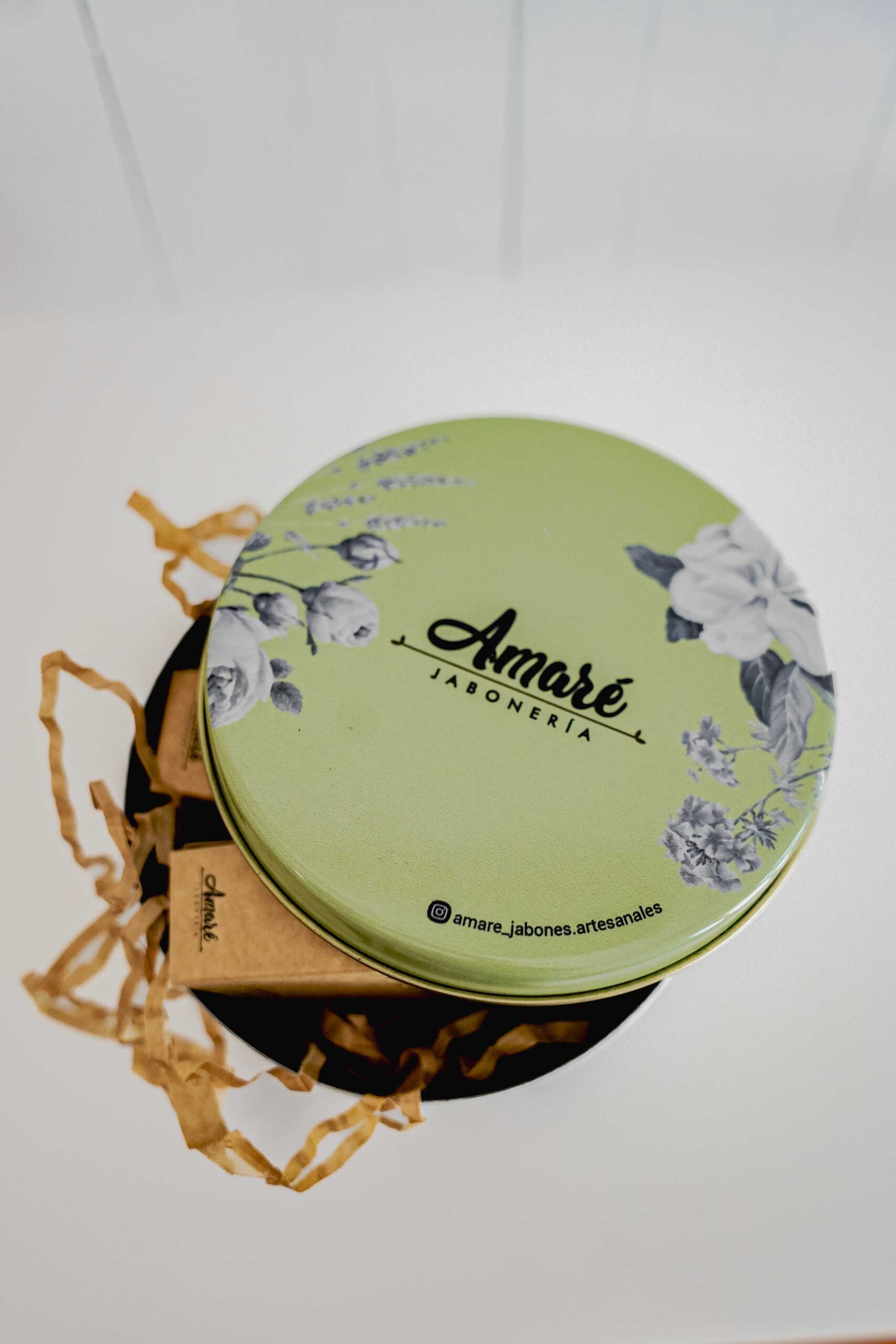La elegante lata reutilizable sella y protege los jabones, convirtiendo este set en un regalo sofisticado y listo para obsequiar. Es el trío perfecto para descubrir la riqueza de lo hecho a mano por Amaré.